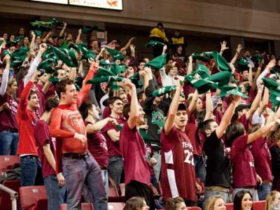 Luke is the first to admit that more wins had a lot to do with filling those seats. But Luke's role, which went far beyond painting his body and leading chants, shouldn't be underestimated. As the Cherry Crusade's vice president in 2007-08 and president in 2008-09 and 2009-10, he spearheaded a tireless drive to increase student fan engagement. The Cherry Crusade led promotional raids on dorms, slipping flyers under every door. They blanketed the student body with e-mails via the Wild Cherry listserv. They borrowed the Hooter costume and walked around Main Campus carrying a sign promoting the evening's game. They set up tables at orientation and aggressively recruited freshmen to join their cause. They arranged student bus trips to select football, men's basketball and women's basketball road games, including last year's EagleBank Bowl and NCAA tournament games. When Temple basketball had games at the Palestra, they orchestrated subway car takeovers, streaming into a select car and singing and chanting all the way to West Philadelphia.
