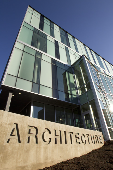 Opened in January, this striking new $12 million building supports the unique needs of architecture students and faculty by enabling collaboration and interaction in professional-quality space. An innovative glass curtain wall exterior “skin” allows daylight into interior studios and classrooms and provides dynamic views of the surrounding area. The open floor plan enables ample space for group work, especially important in a learning environment customized for design students.