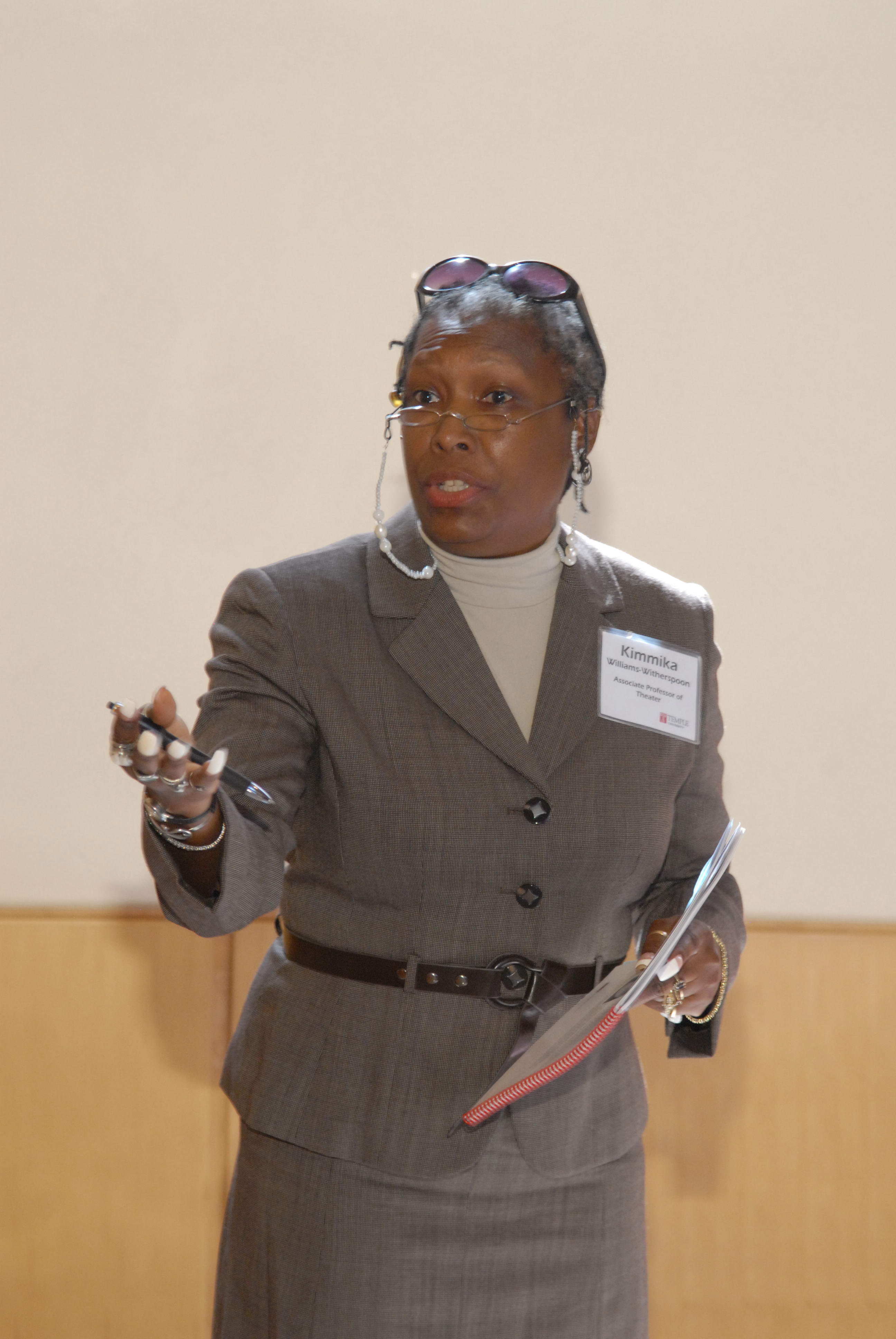Kimmika Williams-Witherspoon led a discussion on the program itself. Now an associate professor of theater at Temple, she was working part-time as a park ranger while raising two small children and continuing to write plays and poetry when she was awarded a program fellowship in 1996.