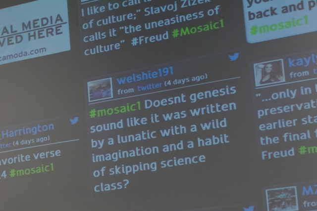 At the beginning of the semester, Shapiro tells the students that cell phones are welcome in class. In fact, he asks them to tweet about what they’re learning both during and after class hours using the hashtags #mosaic1 and #mosaic2. The caveat? They must remain engaged throughout.
