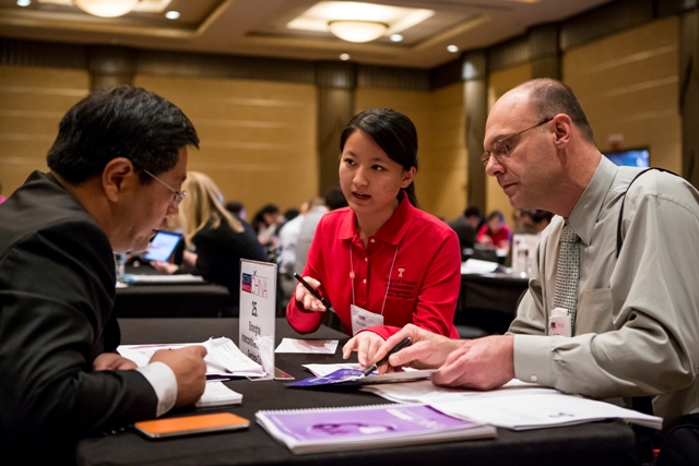 As Wednesday’s business meetings ended, Evan Saunders, co-founder and CEO of Attract China, spotted summit founder and Chairman Jake Steinman. Almost immediately, Saunders complimented the friendliness and professionalism of the student-translators.