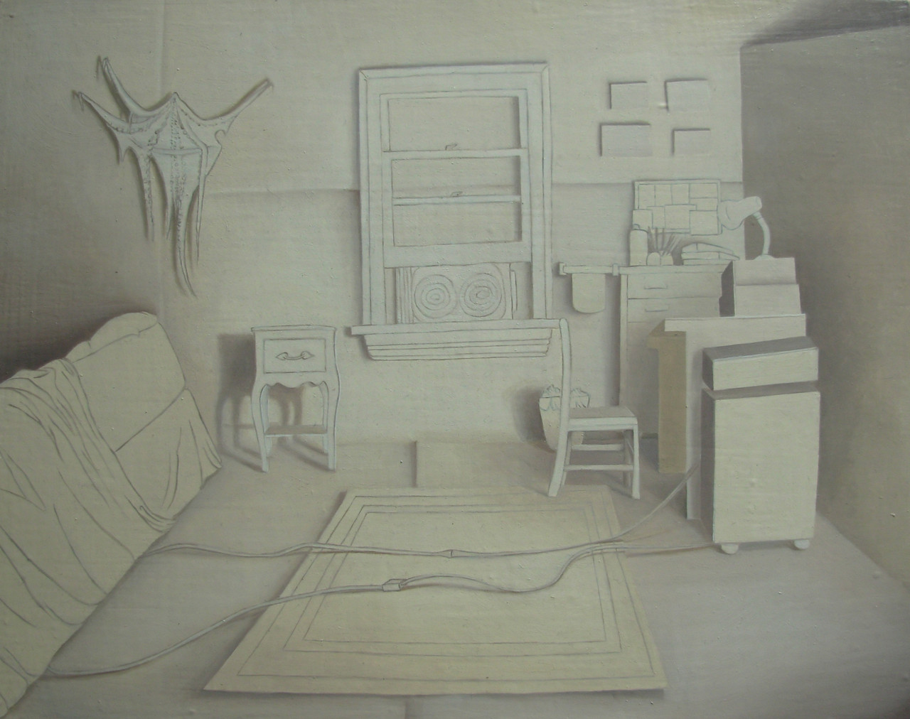 Among the alumni artists represented at "Victory for Tyler: Victory for All 2013" are Susan Still Scott, whose "constructed paintings" evoke sculpture and architecture; Rachael Gorchov, who makes "cultural snapshots" by painting, duplicating and re-photographing everyday images; and printmaker and jewelry maker Steven Ford, who builds print collages by assembling densely textured prints made from the same plate. The artists selected to exhibit by Pobocha range in age and experience from painter Jay Bilinsky, who graduated two months ago, to John Costanza, who earned his BFA in ceramics from Tyler in 1949.