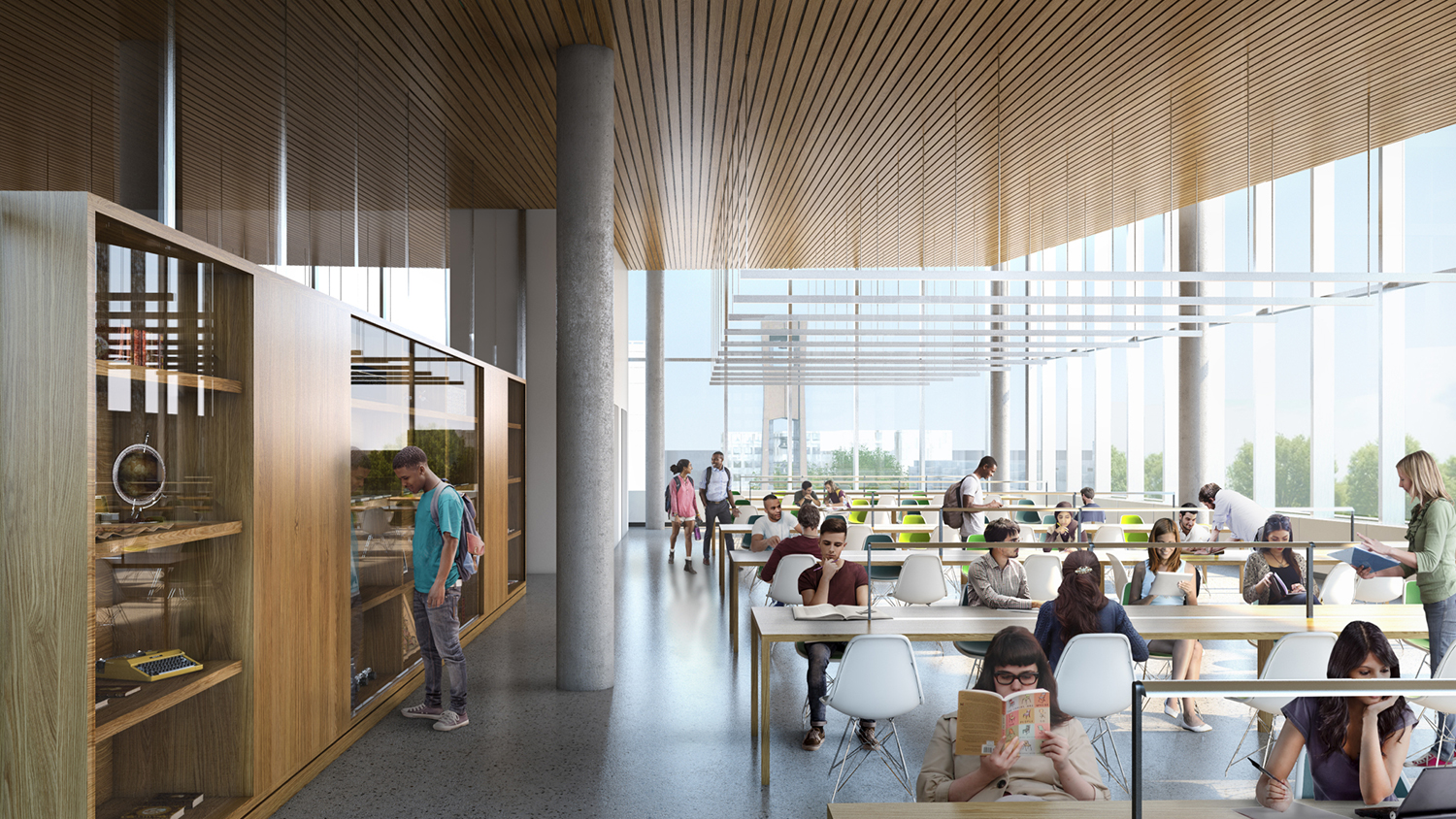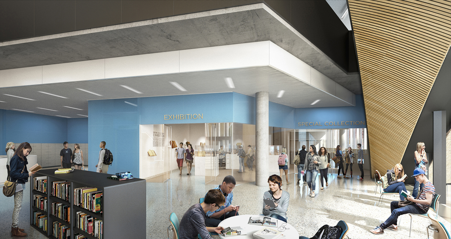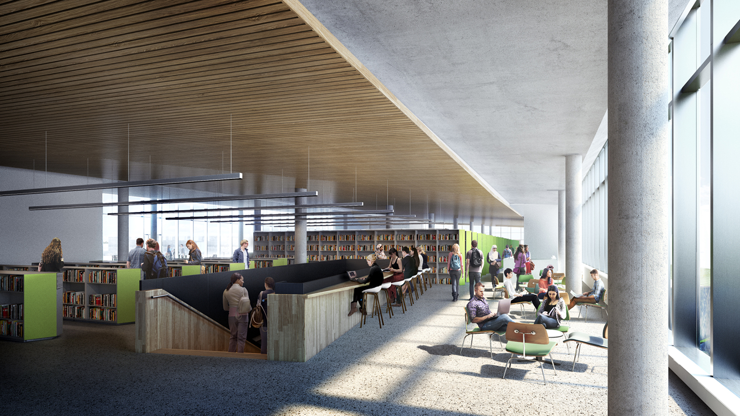 Although Temple’s new state-of-the-art library at the heart of Main Campus is still little more than a giant hole in the ground, library architects Snøhetta released new digital renderings earlier this summer that offer first hints of the building’s planned interior. For those who can’t bear waiting for the library to open in late 2018, here’s a short guided tour.