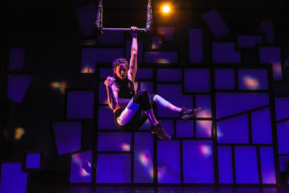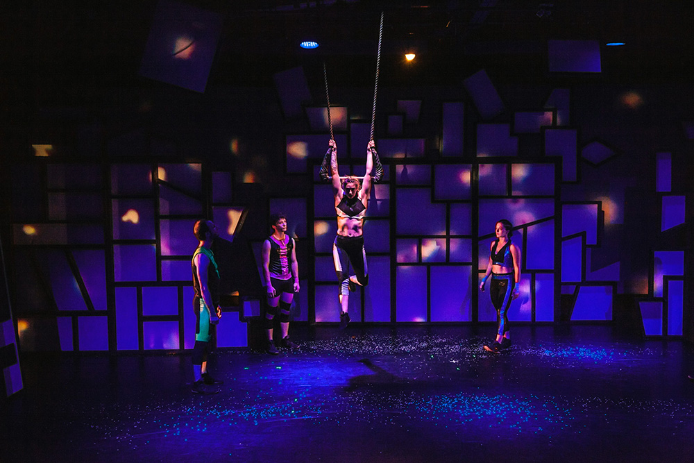 Natalia de la Torre designed costumes for Almanac Dance Circus Theater’s acrobatic folk-music space epic Exile 2588. Performers: Nick Gillette (left top), Nicole Burgio (right top), Mark Wong (left bo