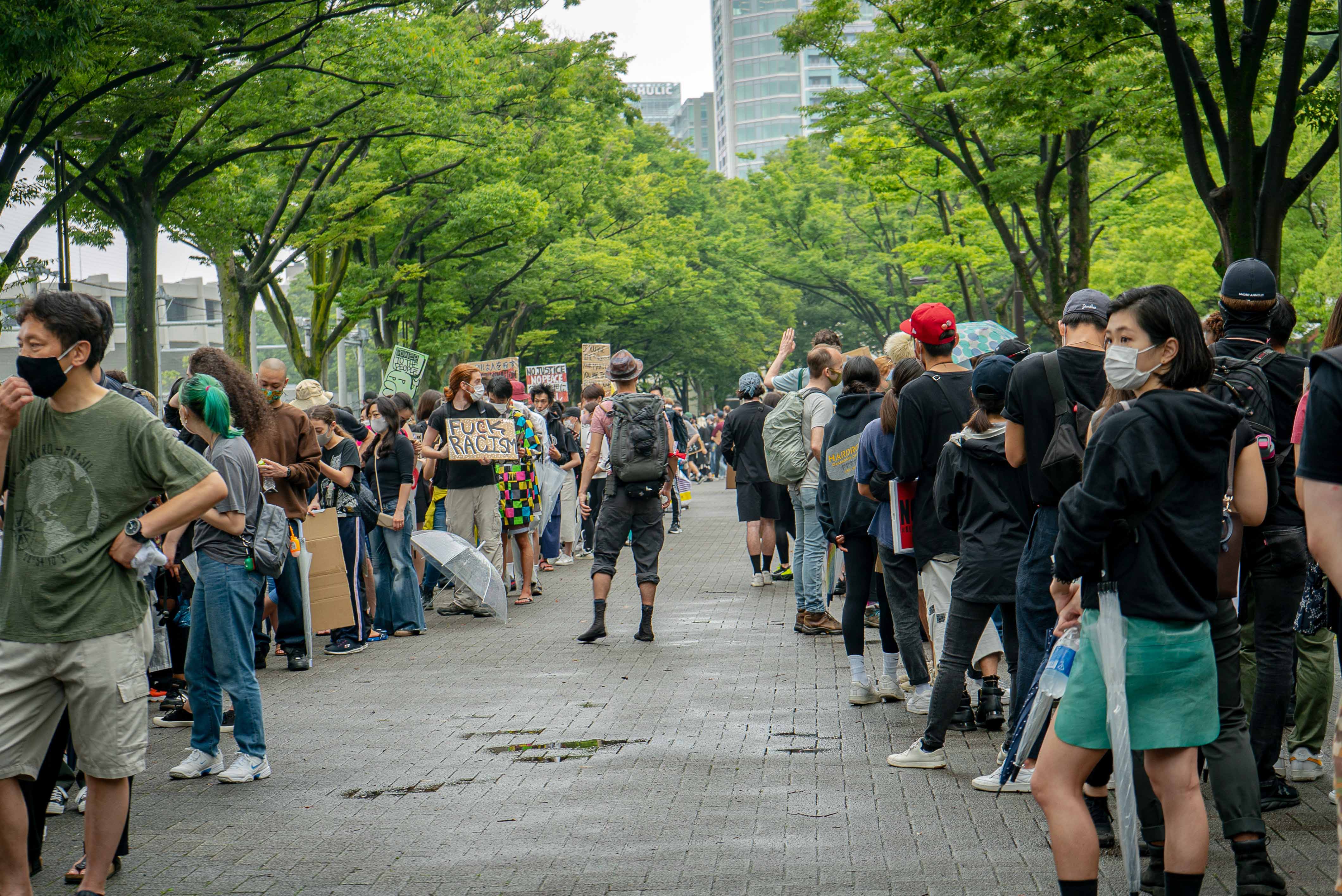 JA: At the end of the march, a Japanese man approached and he was angry because he thought we hadn’t let Japanese people speak. It stands out in my mind because in no way did we try to control who could or could not speak at the march. I personally believe that the majority of the non-Black people who were there came to learn more about the Black struggle of America’s past and present and to look internally at how that same struggle is mirrored here in Japan to a milder degree.